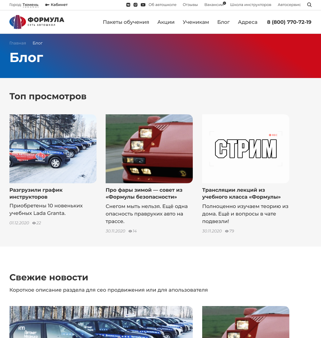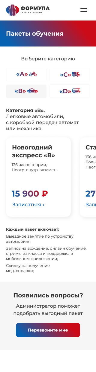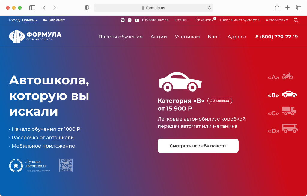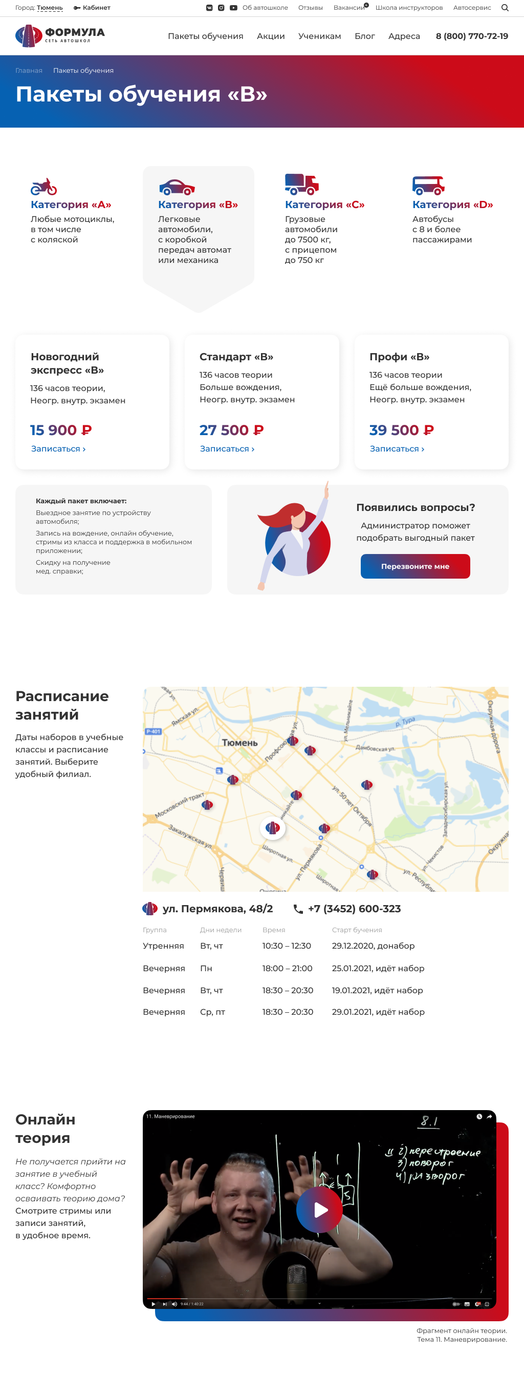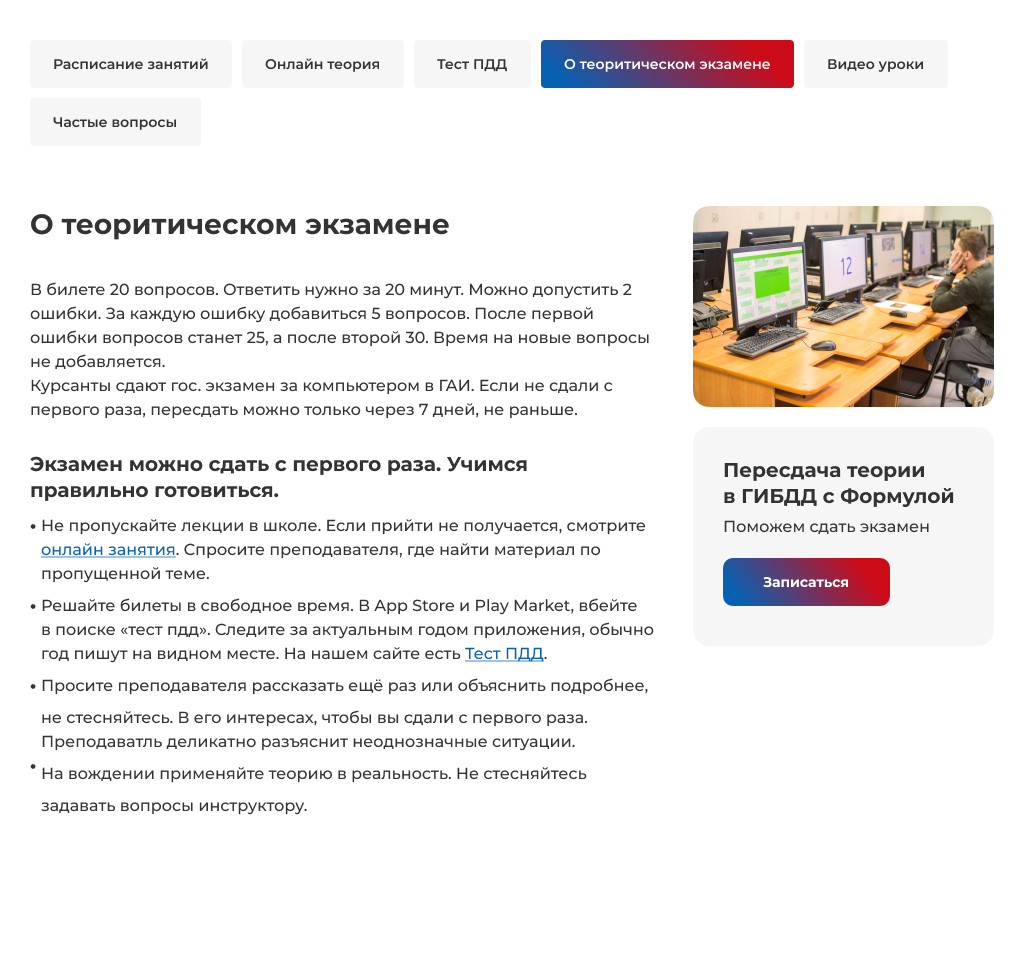 Новый сайт быстро сообщает главное: что за категории и цены на обучение. Адреса учебных классов, расписание новых групп. Сайт вызывает ощущение, что преподаватели классные, а инструкторы внимательные и терпеливые.