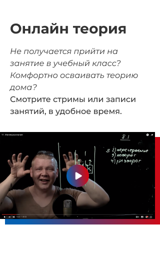 Важное преимущество школы — качественные онлайн лекции по теории. Хороший звук, опытный преподаватель с отточенной дикцией. Наглядность добавляет прозрачная доска для рисования.
